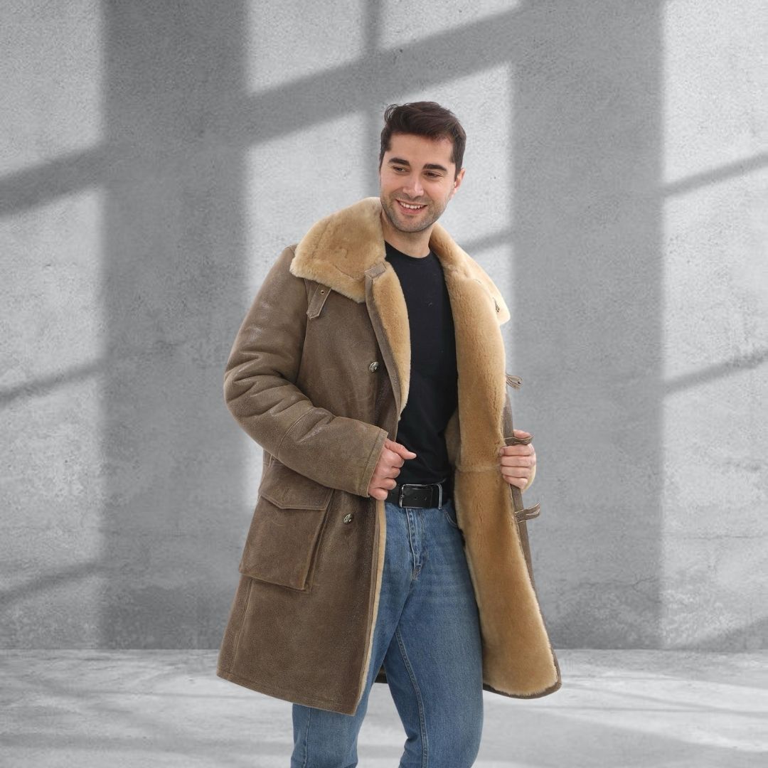 A rugged long coat that fuses vintage roots with contemporary winter resilience.