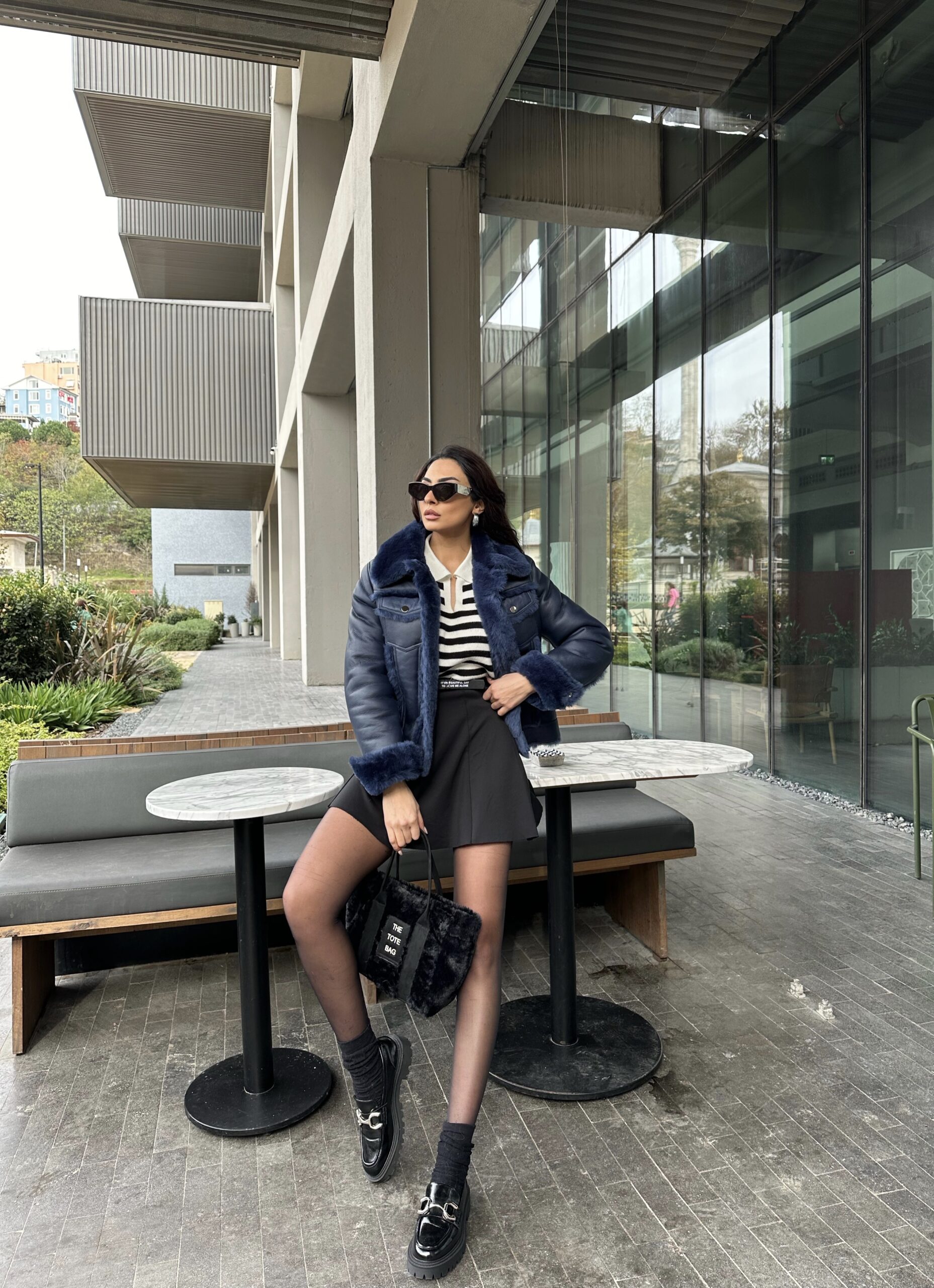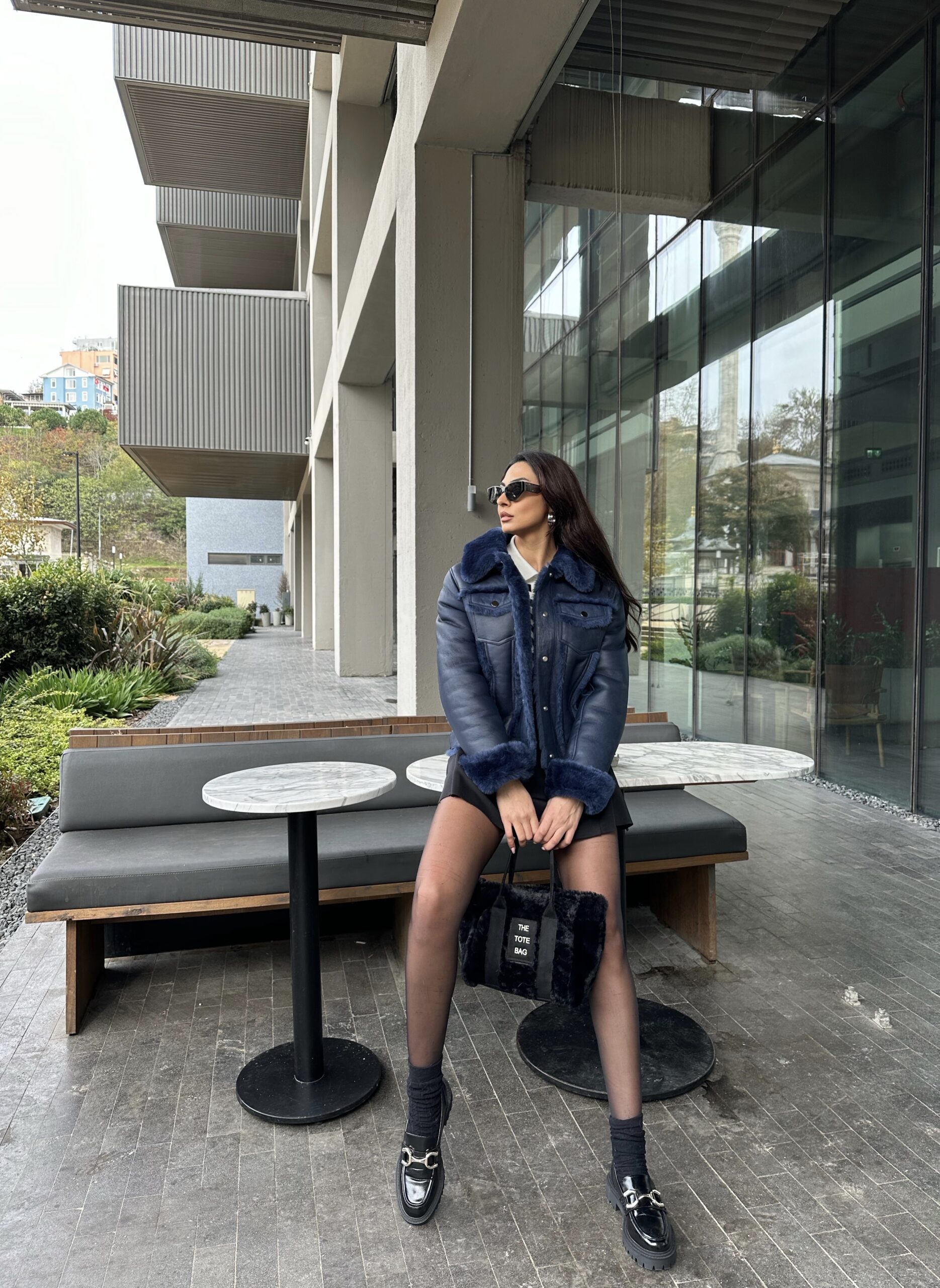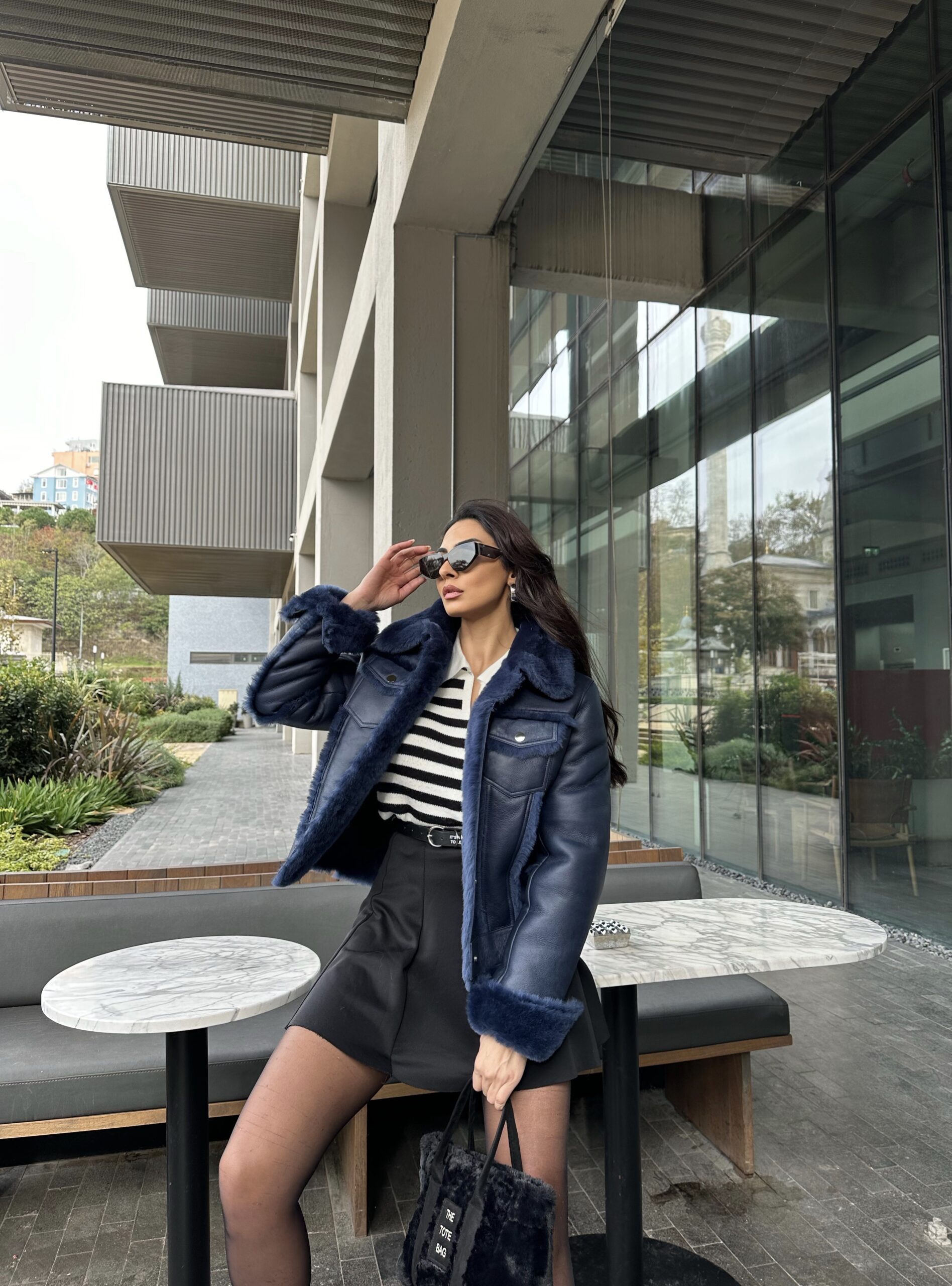 A structured navy shearling piece that blends denim attitude with luxurious warmth. Crafted to stand out.